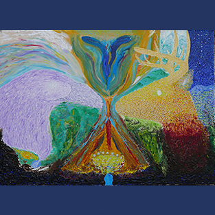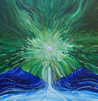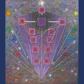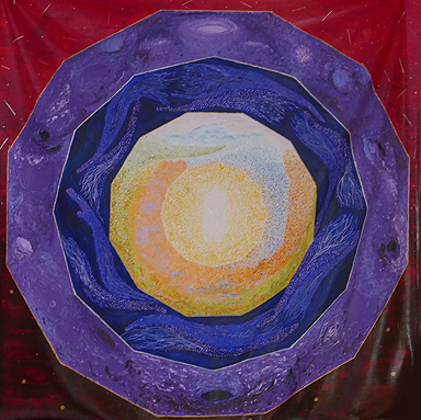 These paintings were painted between in 2017 and 2018. In 2015 and 2016 i didn't paint, i wrote a book, soon to be published. These paintings were painted very slowly. They are based on dreams and visions. I start with a first idea, from a vision or dream, and i prepare the drawings before placing the main ideas on the canvas. I put down a base painting, and then i wait to see if it is the correct resonance. I will have other dreams or visions which will inform the earlier ones, and this will change the painting.
